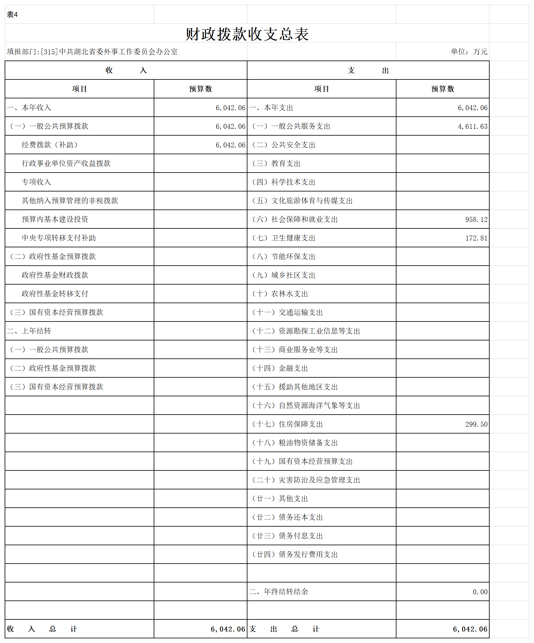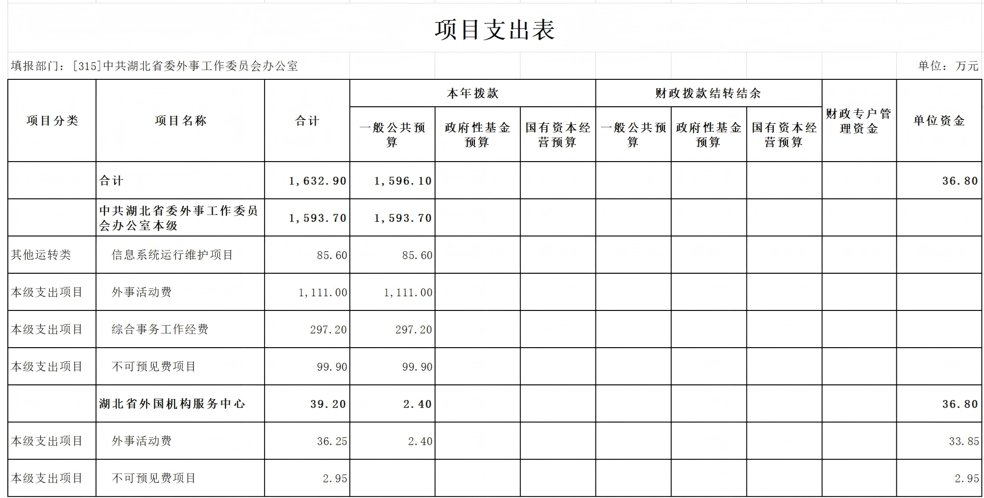其中,省外国机构服务中心为独立的预算编制单位,湖北省人民对外友好协会、机关后勤服务中心、省外事翻译中心未独立编制预算,合并在部门本级编制。